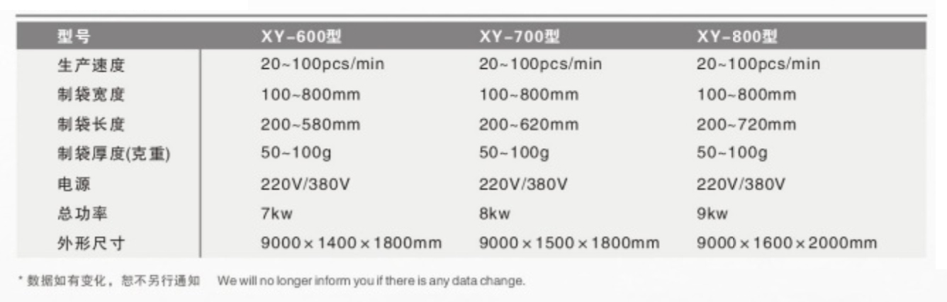 該機適用原材料為無紡布,能加工各種不同規(guī)格,不同型狀的無紡布袋,平口袋,拉鏈袋等,該機集機電為一體,運用LCD觸摸屏操作。配以步進步式定長,光電跟蹤,電腦自動定位,電腦自動糾邊,準確,平穩(wěn)。自動計數即可設定計數報警,自動打孔等工控裝置,使其生產的成品封線牢固,切線美觀。高速效,是你可以放心適用的優(yōu)質環(huán)保型制袋設備。
